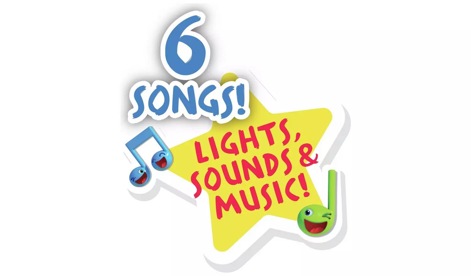 Use the dial on the back to play four nursery rhymes: The Alphabet Song, Bingo, Twinkle, Twinkle Little Star, and Head, Shoulders, Knees and Toes.