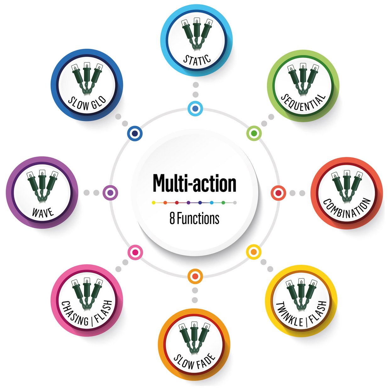 The set features eight multi-action lighting effects from twinkle to steady glow, allowing you to set the perfect festive mood.