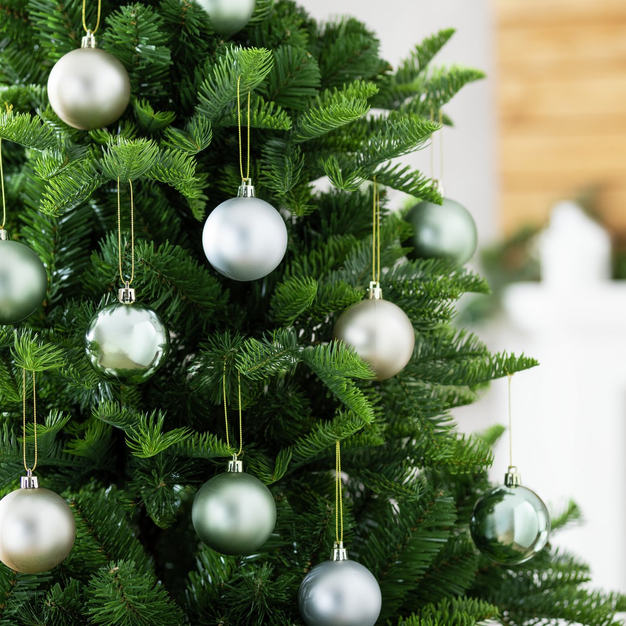 Habitat Pack of 24 Christmas Tree Baubles Decoration - Sage And Silver