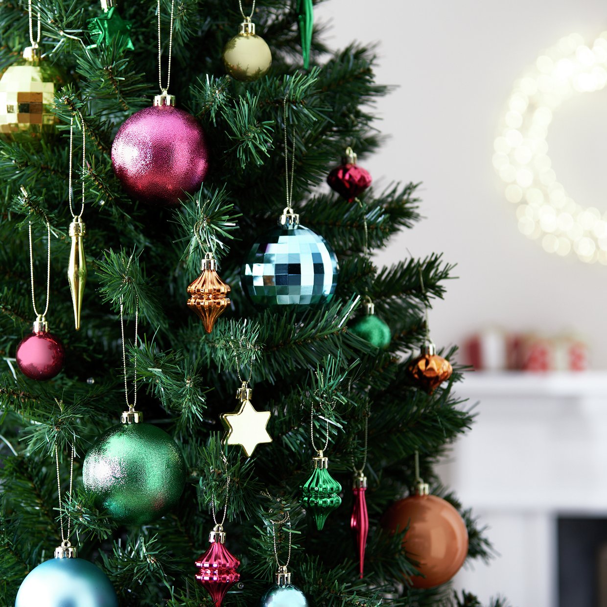 This pack of 49 shatterproof Christmas baubles has plenty of variety to dress your tree in stunning style.