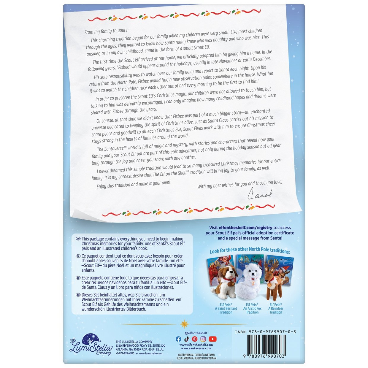 Includes Adoptable Boy Scout Elf figure with blue eyes, Artfully illustrated storybook, Keepsake box and Official adoption certificate.