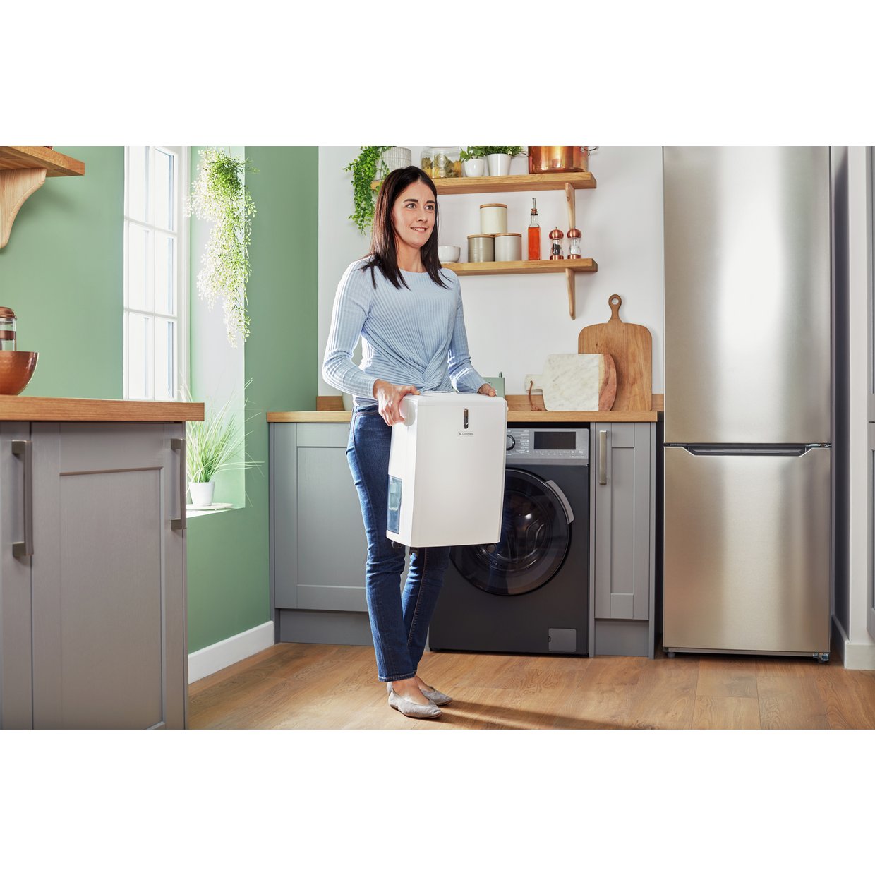 It features a comfort humidity light on its front panel. When the light turns green the humidity is just right, a red glow means it is too dry and when it turns blue the atmosphere is too moist.