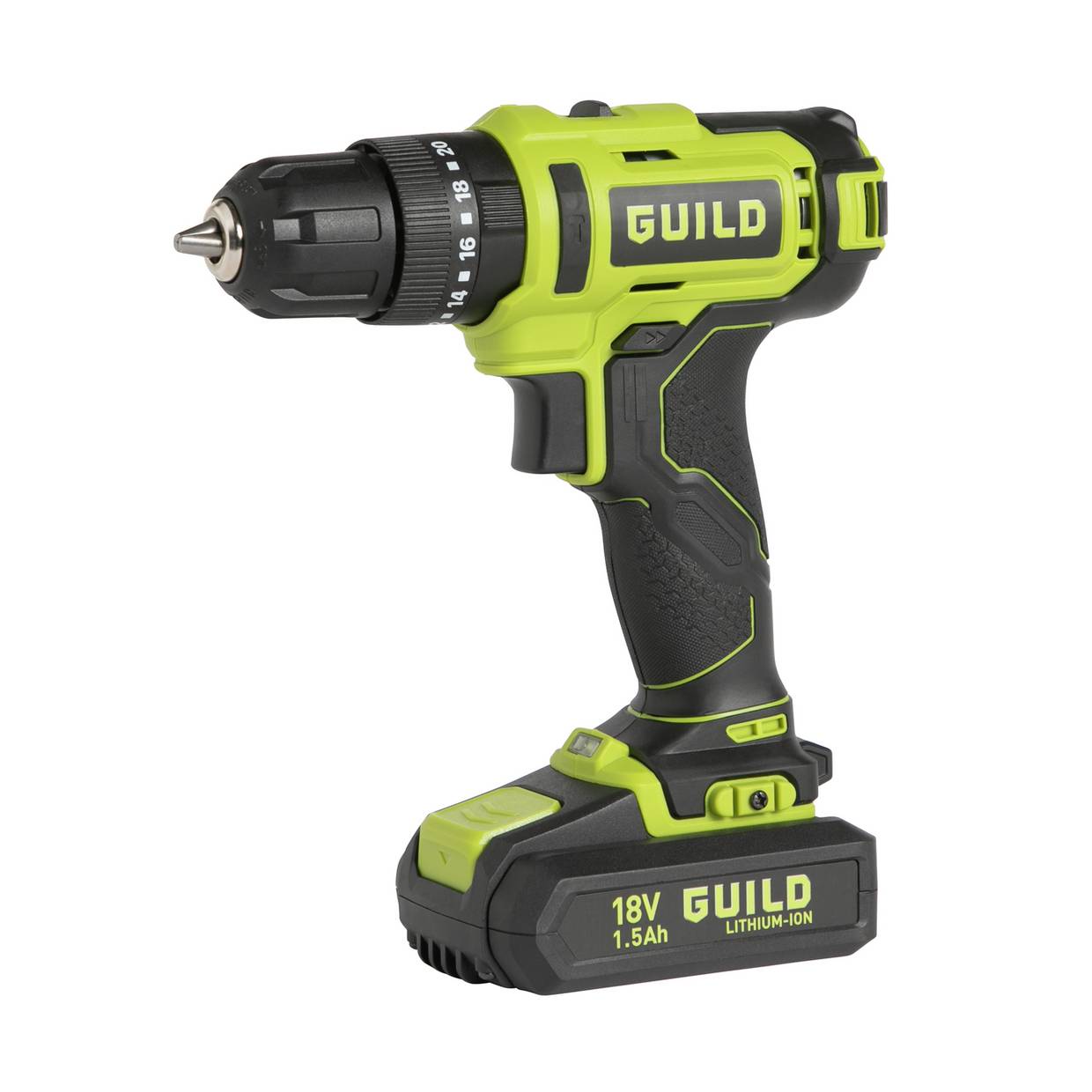 The drill comes with a rechargeable 1.5Ah Lithium-ion battery and a fast charger (just 50 minutes to a full charge).