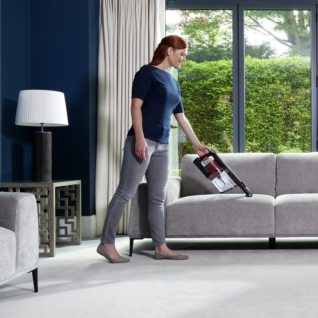 LED display screen – Switch between Eco, Standard and Boost power modes, toggle between Carpet and Hard Floor settings, and see how much charge is remaining. Flexology wand bends to reach under furniture and folds for compact, freestanding storage.