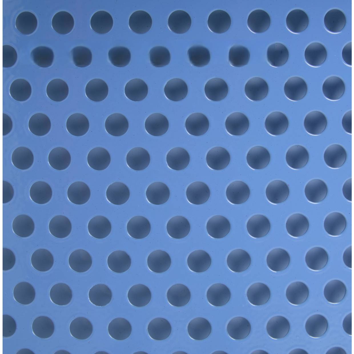 This industrial-style side table is eye-catching in cornflower blue, complemented by the wide cylindrical perforated base.