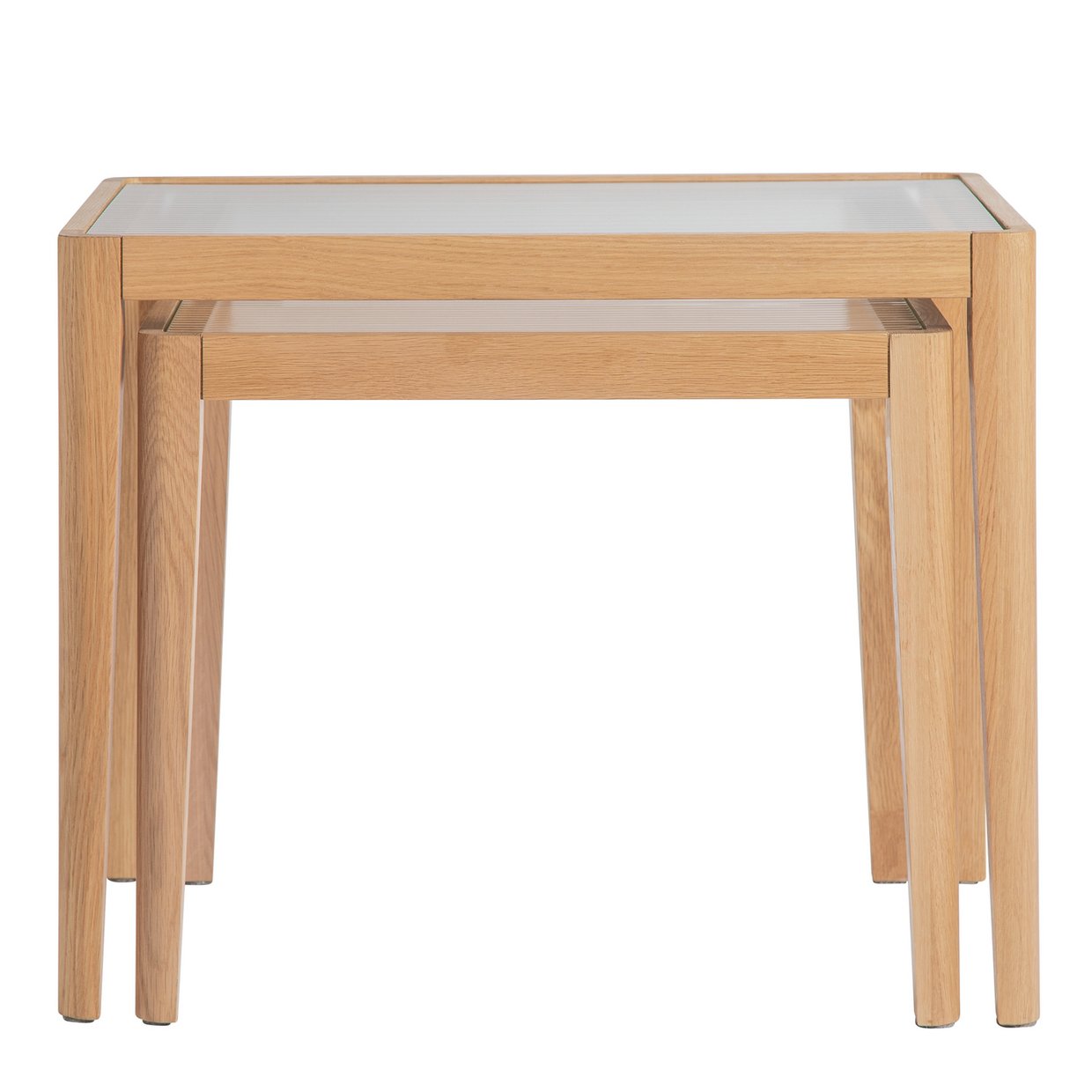 Each one has a reeded glass top and oak like finish for a natural contemporary lightness of design.