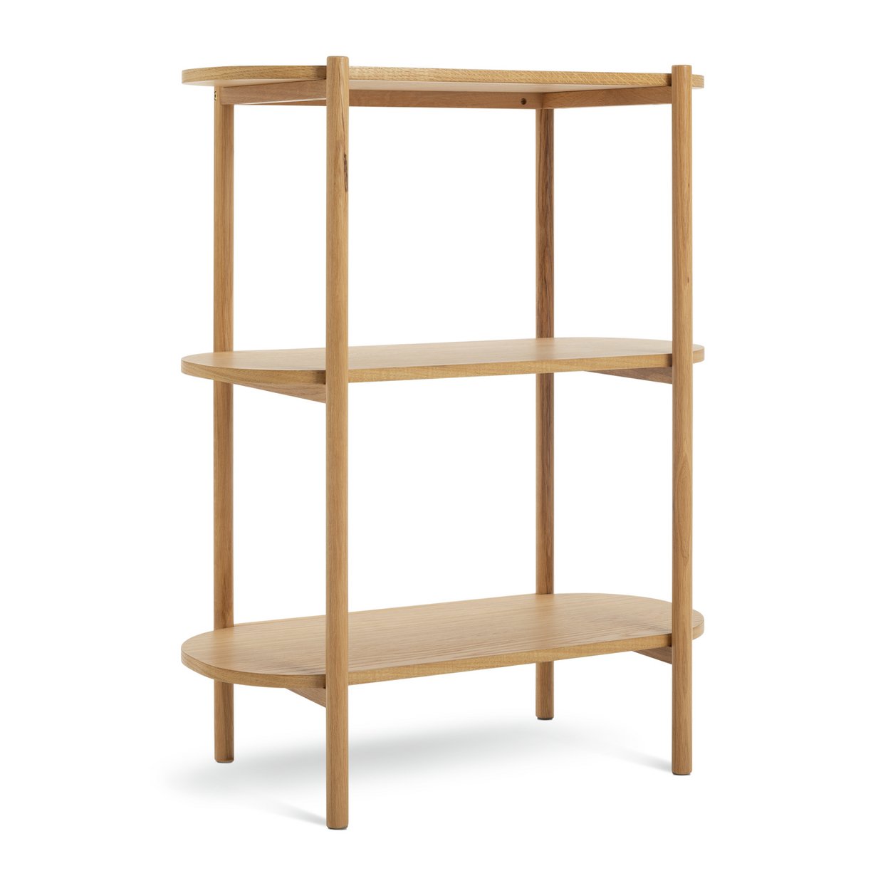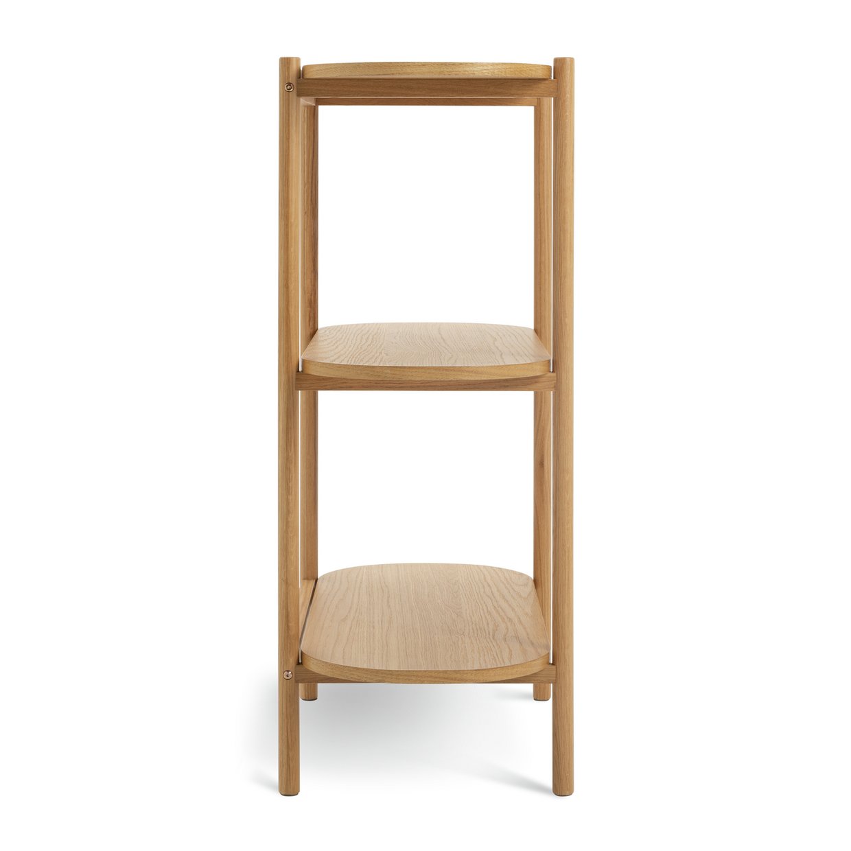 With smooth simple lines, this solid oak framed unit has 3 curved oak veneer shelves.