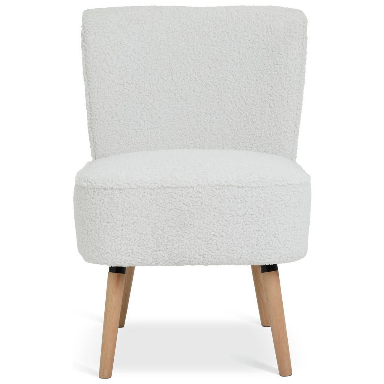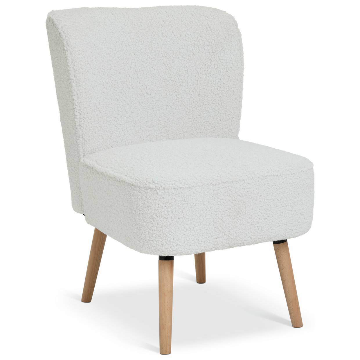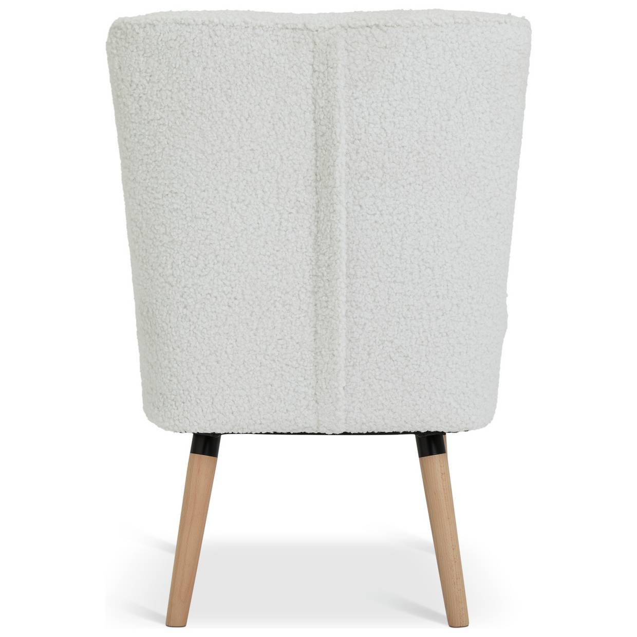 The deep cushioned seat and curvy padded back are upholstered in a cream boucle fabric.