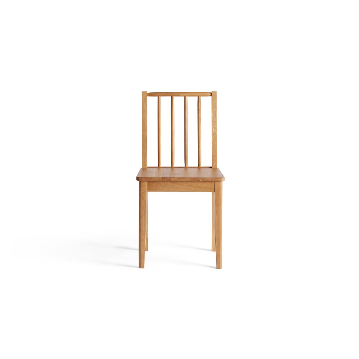 The solid wood square seat is softened by curved spindles on the back, giving them a fresh, modern look.