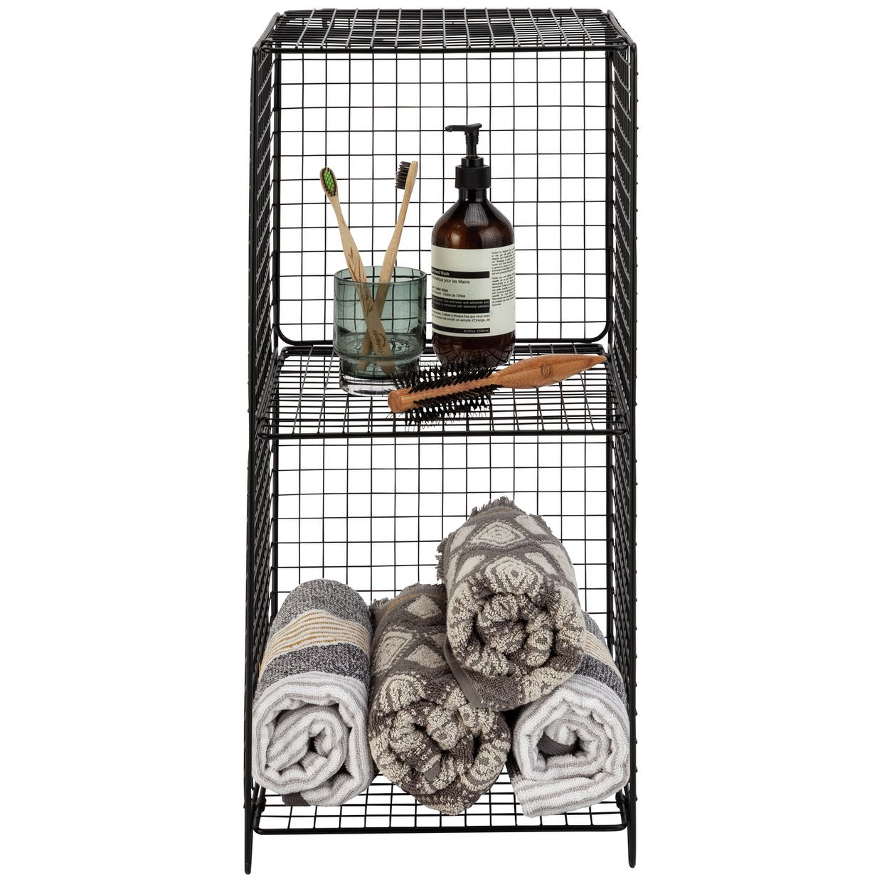 This 2 tier black metal wire tower makes the perfect storage place anywhere in your home.