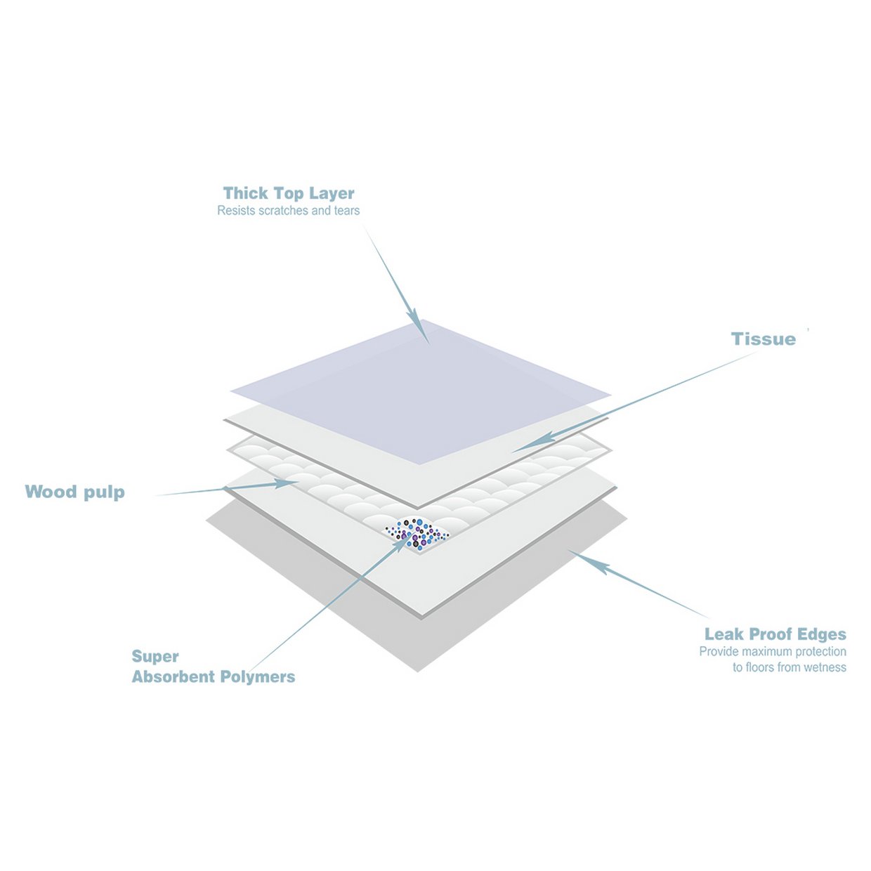 Dog absorbent pads feature a 5-ply Floor Armor leak-proof system for maximum protection.