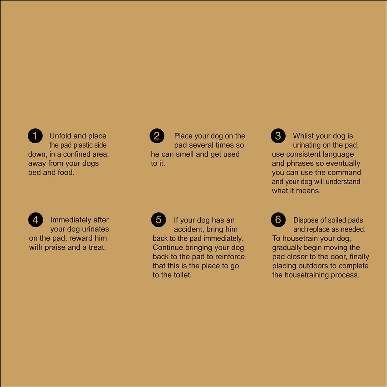 These puppy training pads are durable and easy to dispose of. Dog absorbent pads feature a 5-ply Floor Armor leak-proof system for maximum protection Use just one of the pads for all-day performance—no need to stack pads, the pads measure 24" x 24", which can also be used for adult, convalescing or senior dogs to keep your home protected from stains and odours. 100 Count Pads in one package.