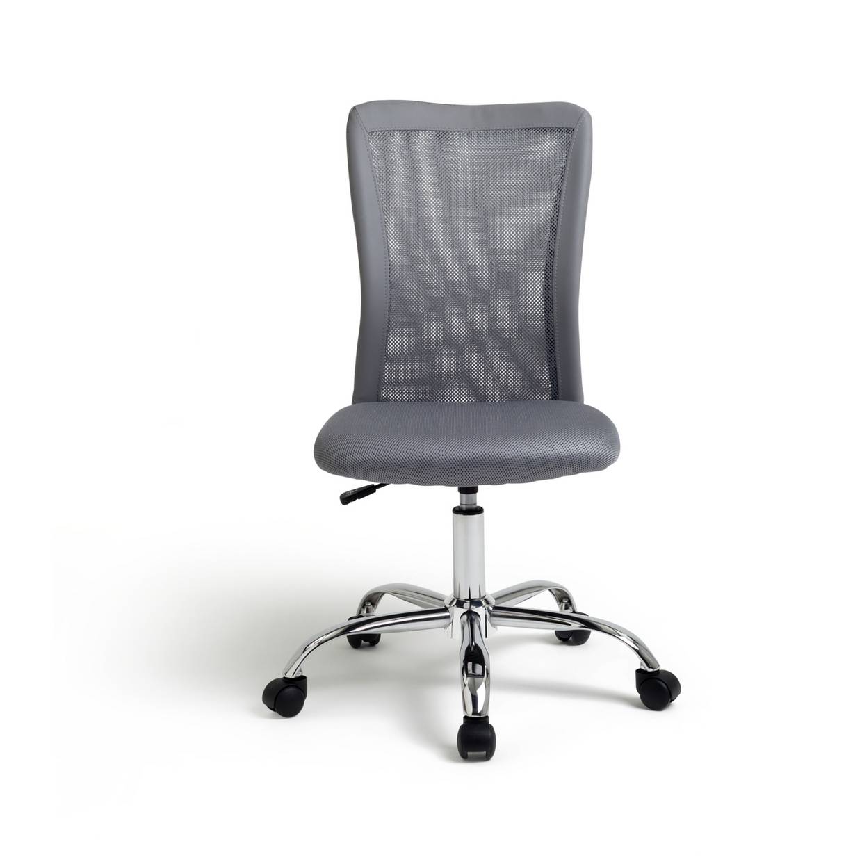In agrey finish with a smart metalbaseit's a stylish and practical item for home workers.