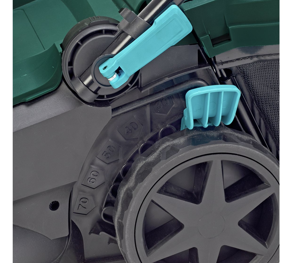 It has 6 cutting heights, in-line wheels and a rear roller to help you achieve a precise and professional striped finish right up to the edge of your lawn.