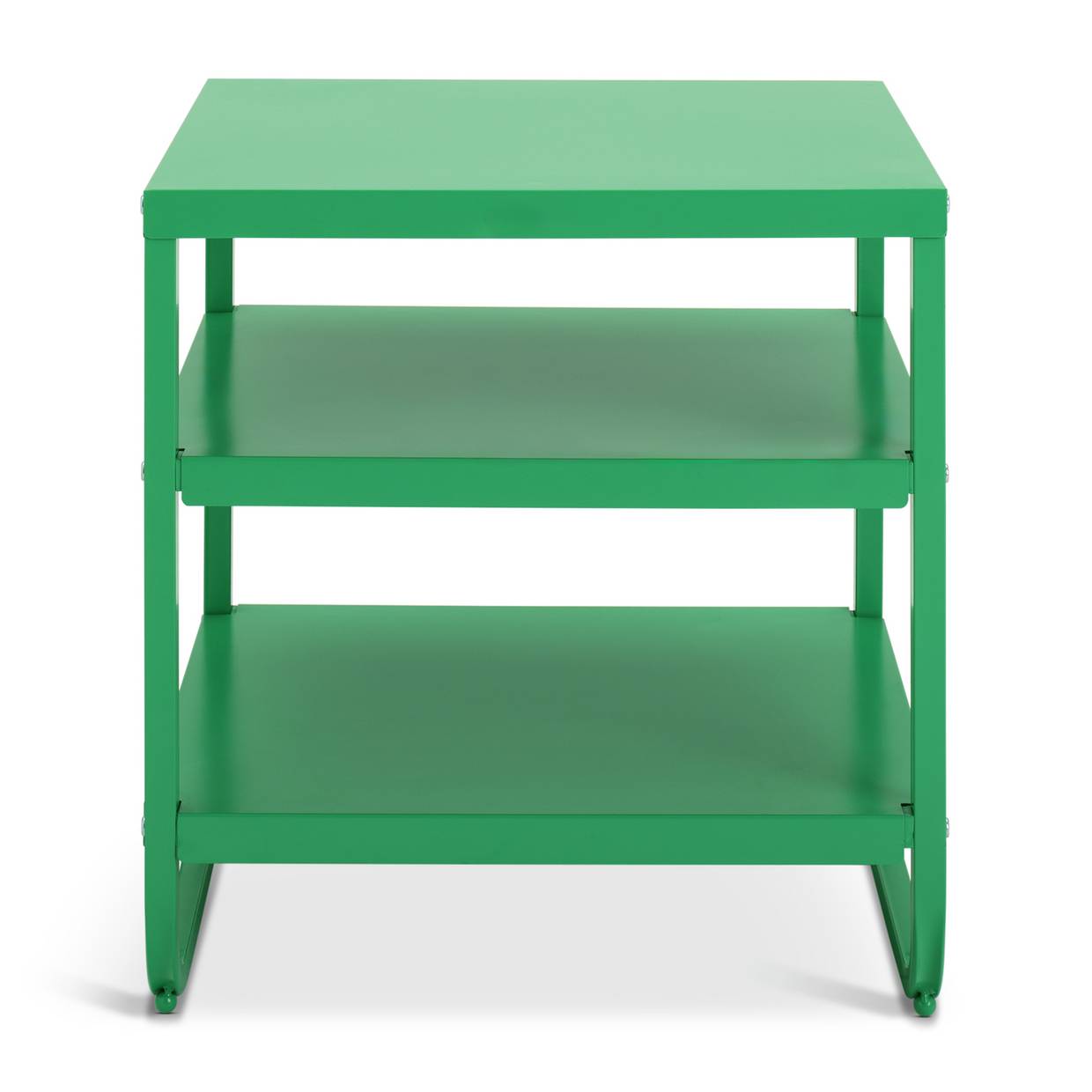 In lightweight green steel, it makes a great bedside storage option with plenty of surface space above and below.