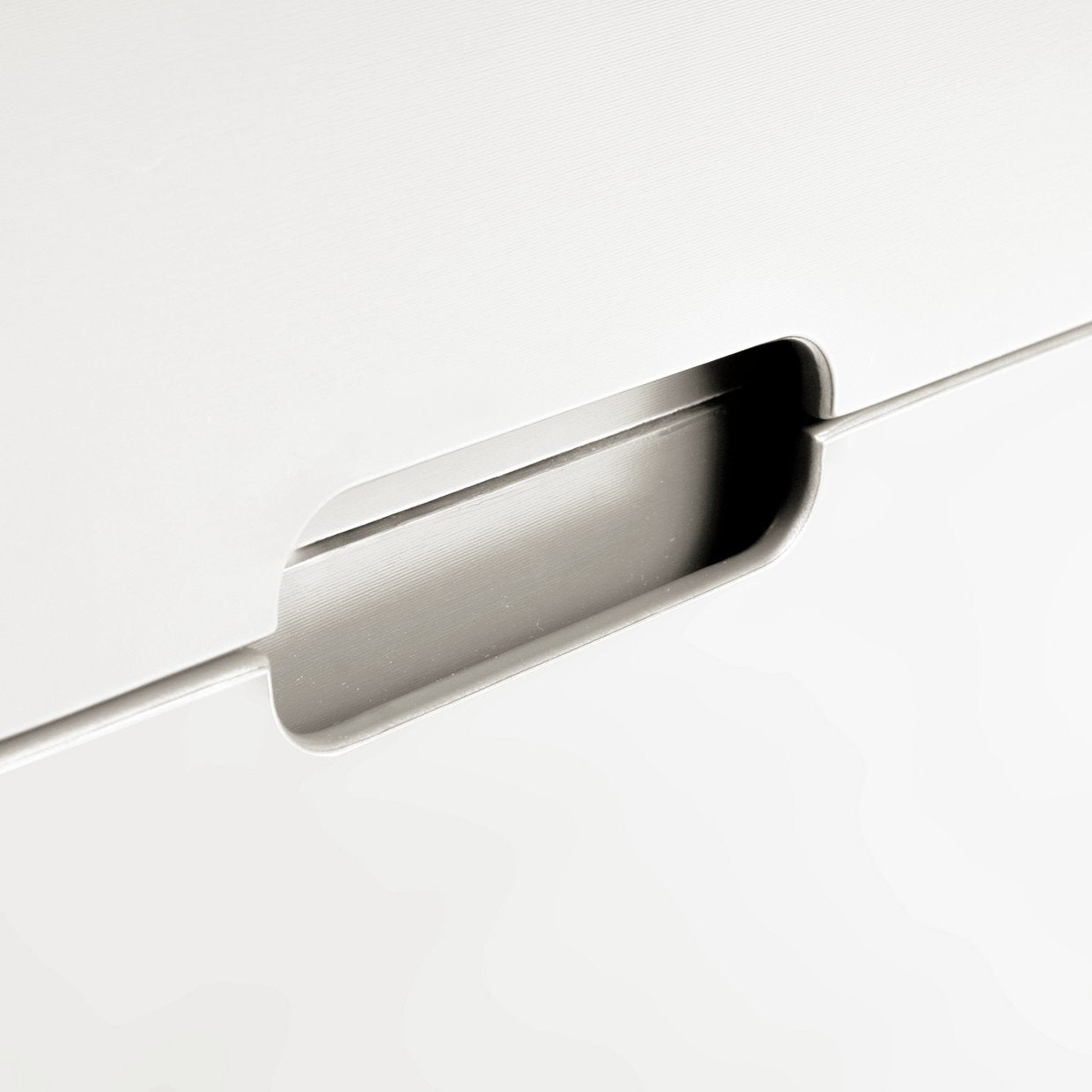 The 2 easy glide drawers have cut-out handles that complement the smooth silhouette.