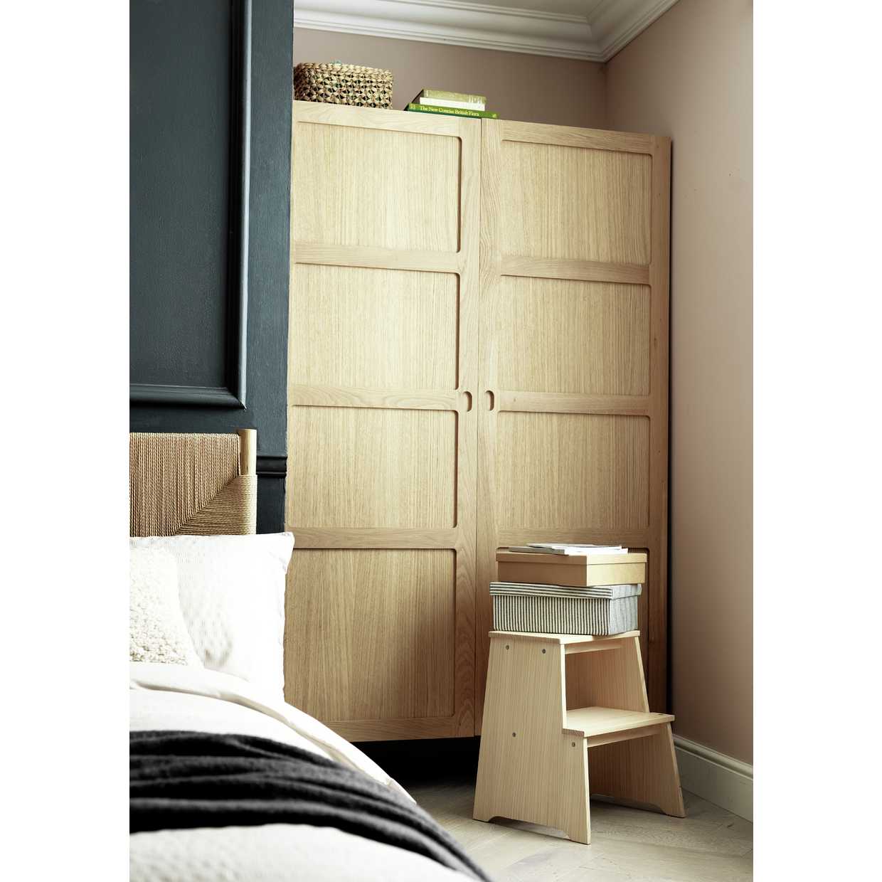 And this natural wooden stool is even smart enough to double as a quirky bedside table. Now there's an idea.