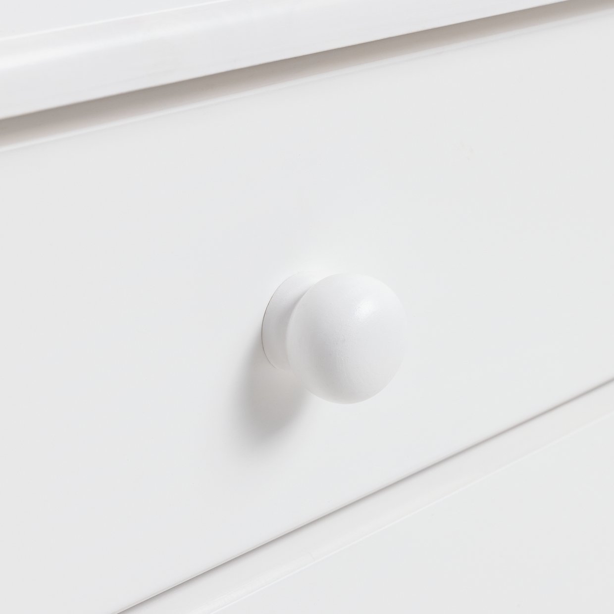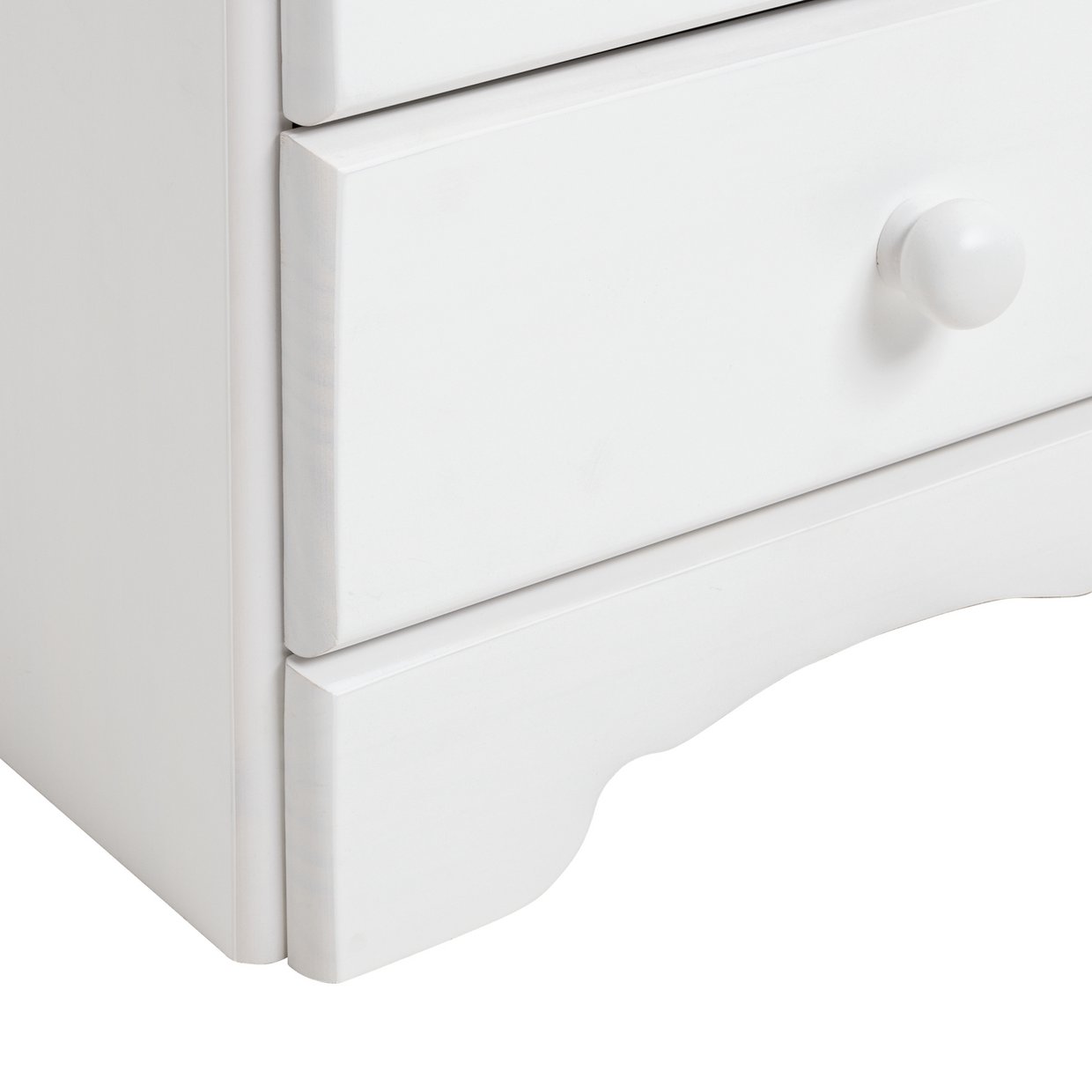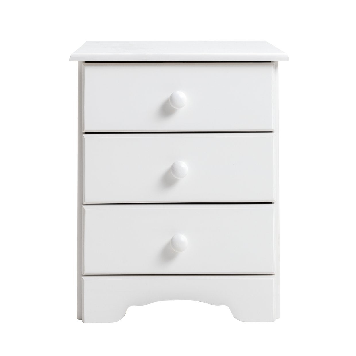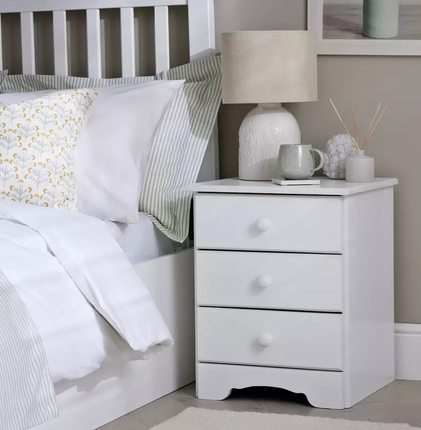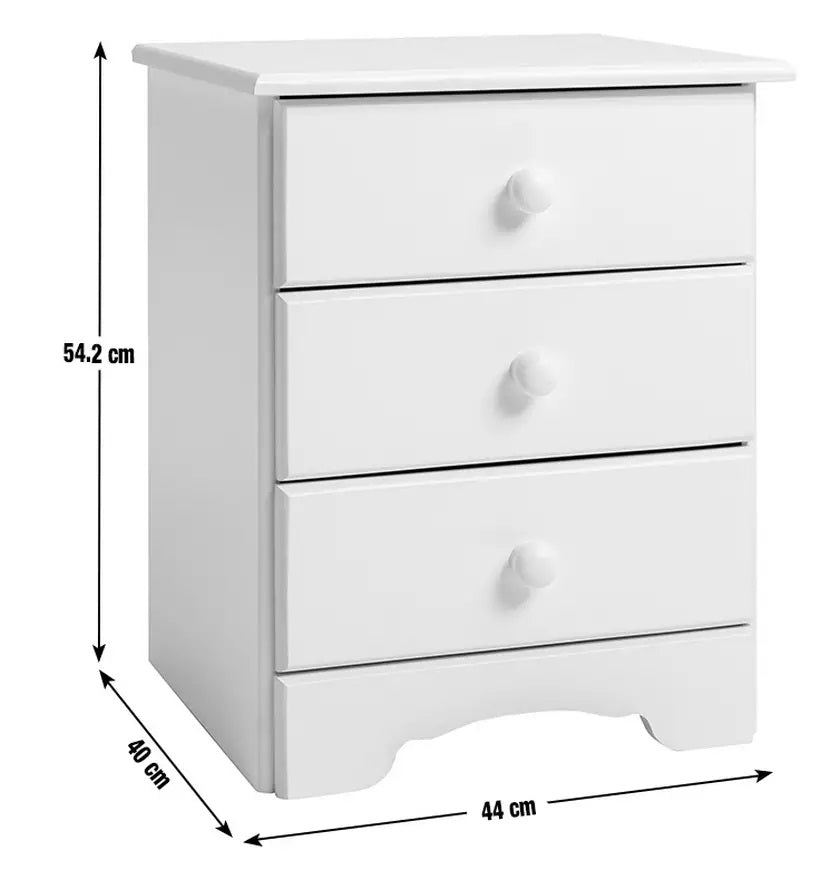 With its decorative carved base and 3 spacious drawers this white Nordic bedside cabinet is smart and useful.