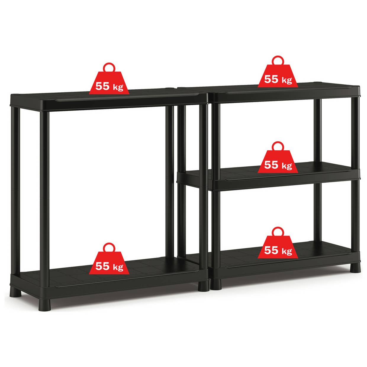 Durable and effective shelf connection system – each shelf supports up to 55kg.