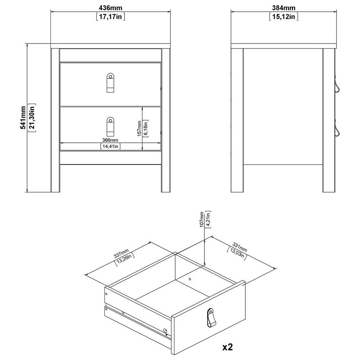 Tvilum Madrid 2 Drawer Bedside Table - Black