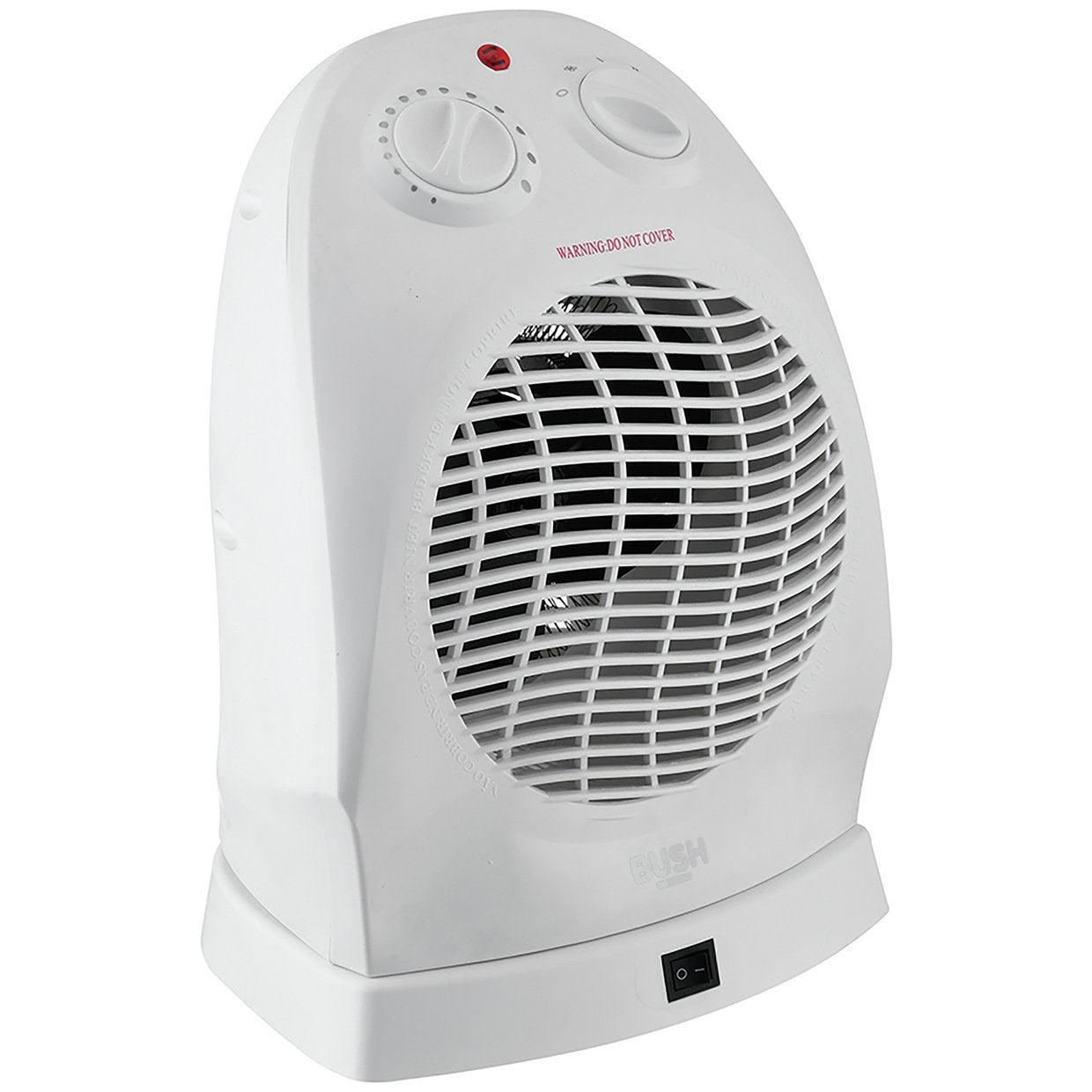 2 heat settings: 1200W/2400W and normal fan Adjustable thermostat.