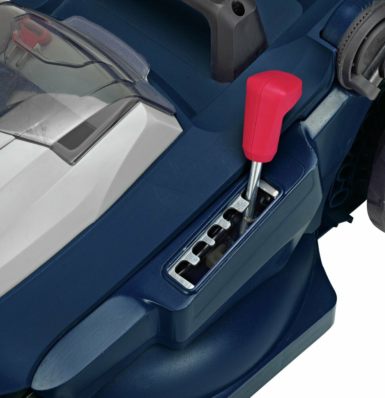 There are 5 cut heights on this mower, with a cut height range from 2.2cm-6.2cm for both healthy and hard wearing lawns to long, damp grass and uneven lawns.