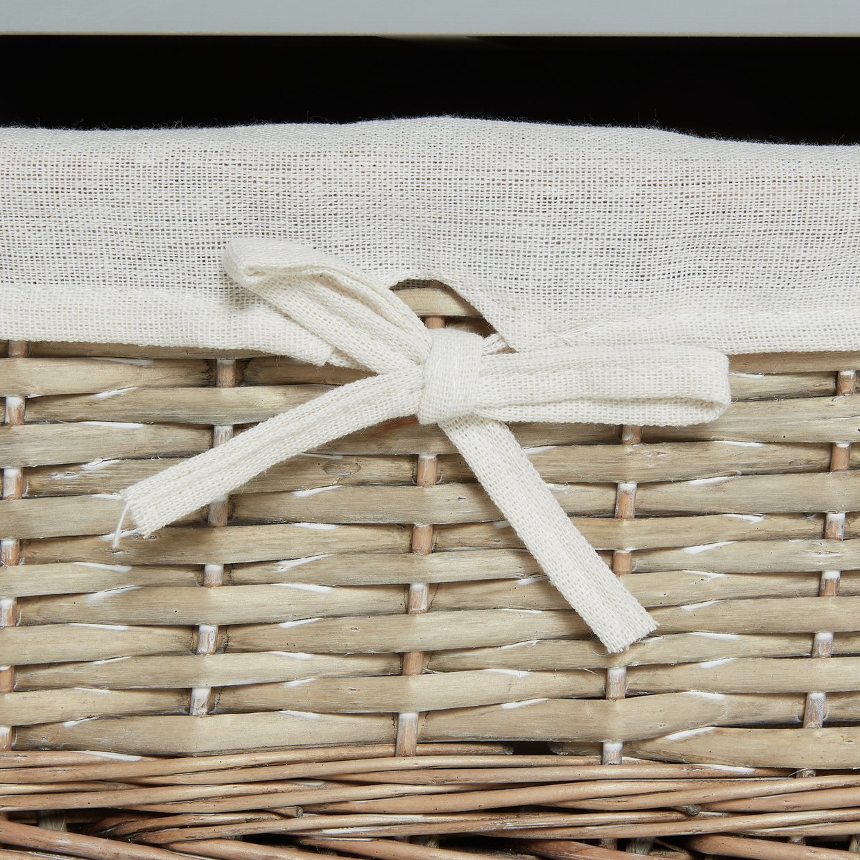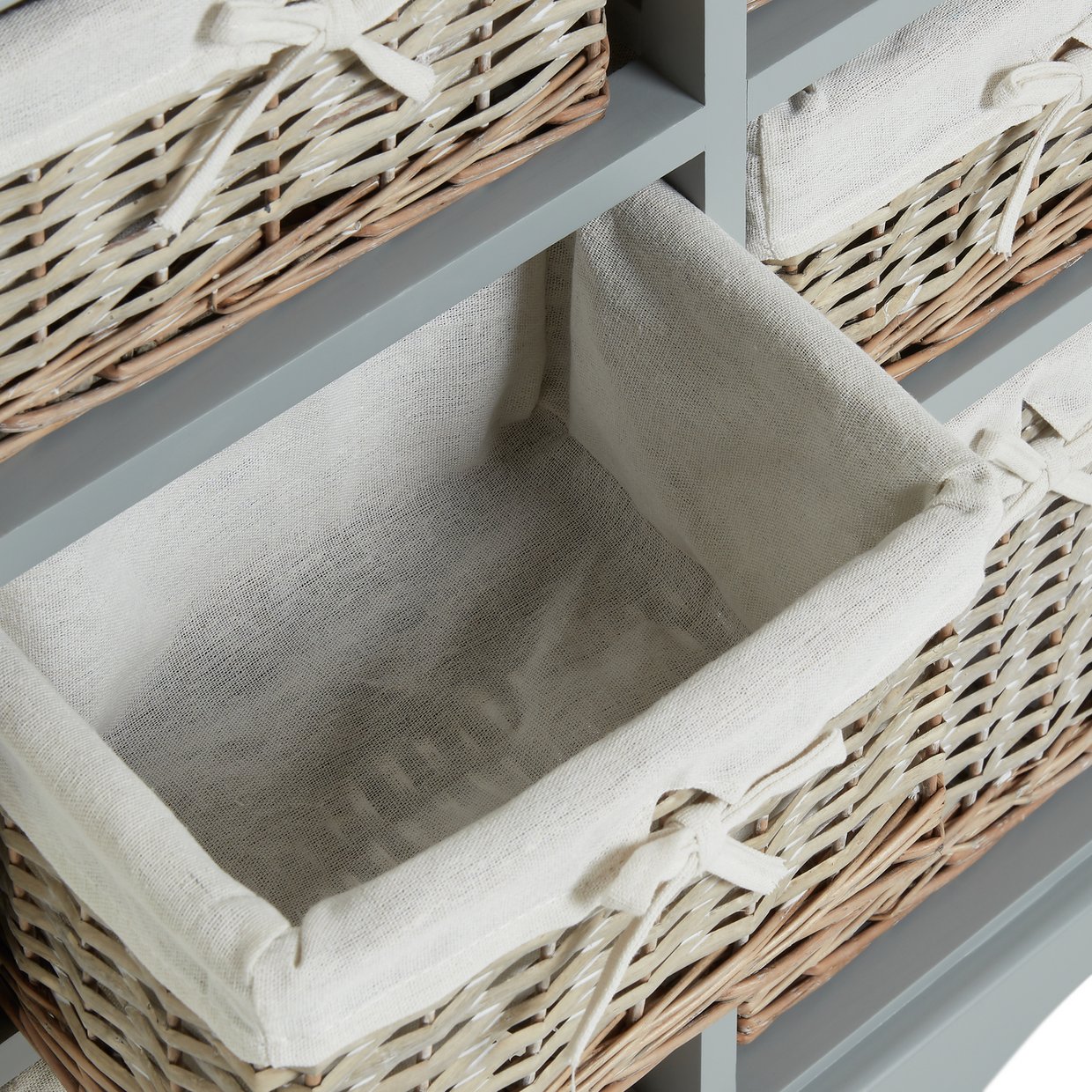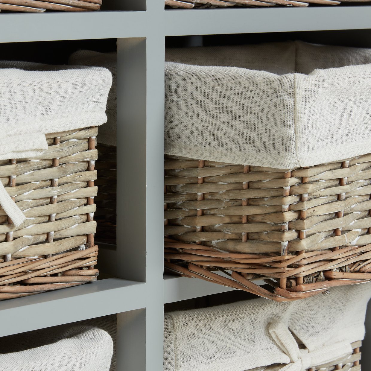 It doesn't take up much floor space yet the 6 lined willow baskets provide plenty of room to store loose items.
