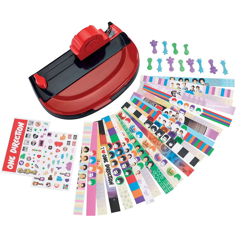 Includes: 1 cool band marker unit, pre-designed wrist band strips, clips, sticker sheets, adhesive tape roll and a set of instructions.