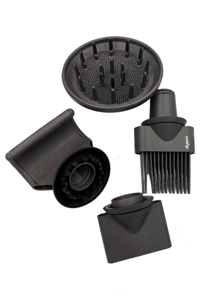 Accessories include Complimentary Dyson-designed Presentation case, Flyaway attachment, Styling concentrator, Diffuser, Gentle air attachment, Wide-tooth comb.
