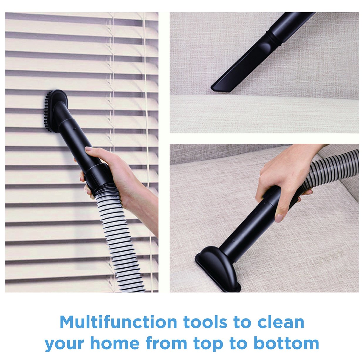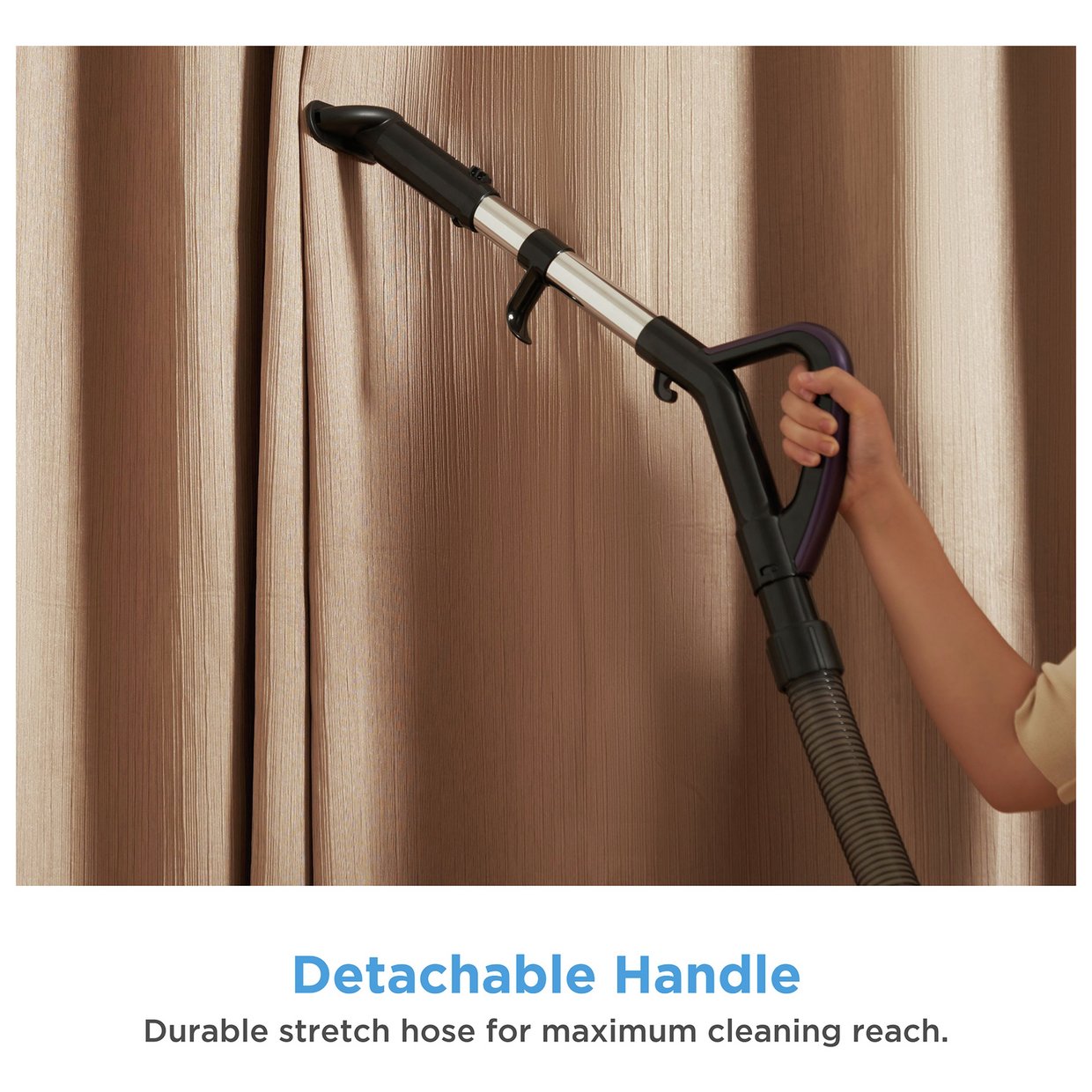 With a detachable handle, long stretchy hose and crevice nozzle you can get into those nooks and crannies.