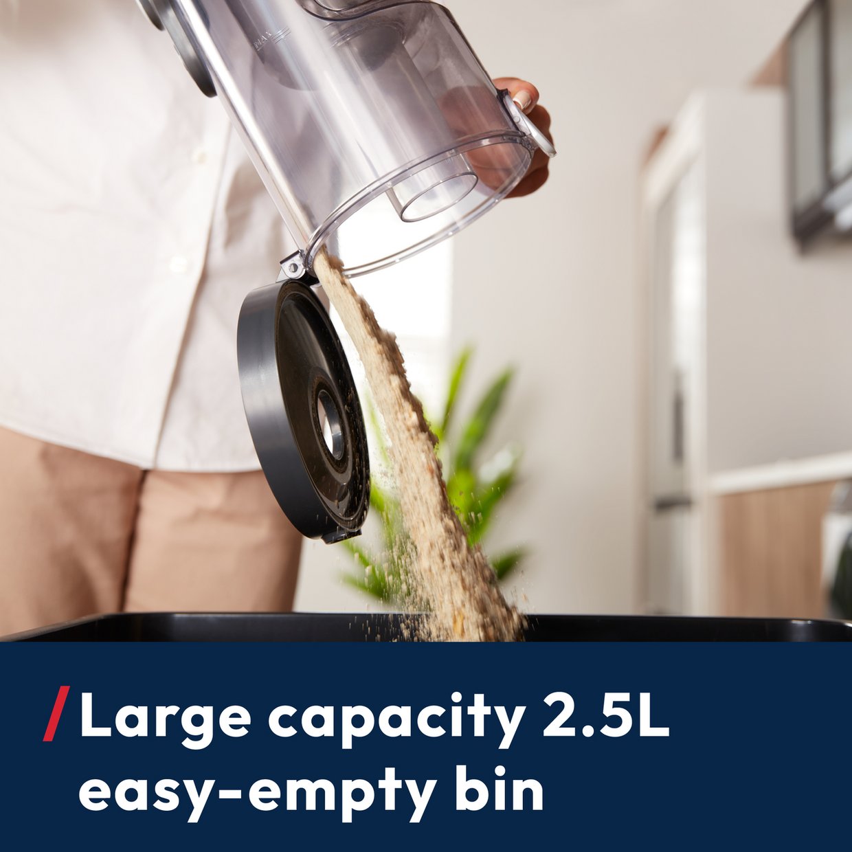 Anti-hairwrap technology means that hair is automatically removed from the brushbar, and the Instant Release Wand allows you to move seamlessly from floors to other surfaces by pressing a single button. *Based on tests measured according to EN 60312-1 clauses 5.7 and 5.9.