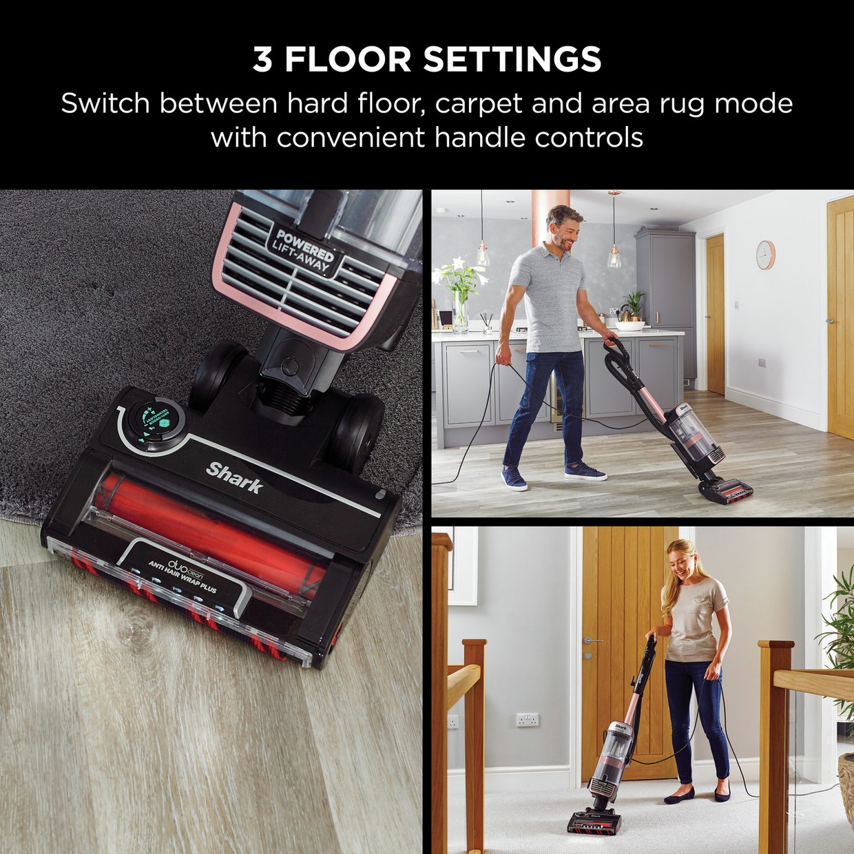 Suitable for carpets, hard floors, stairs and upholstery.