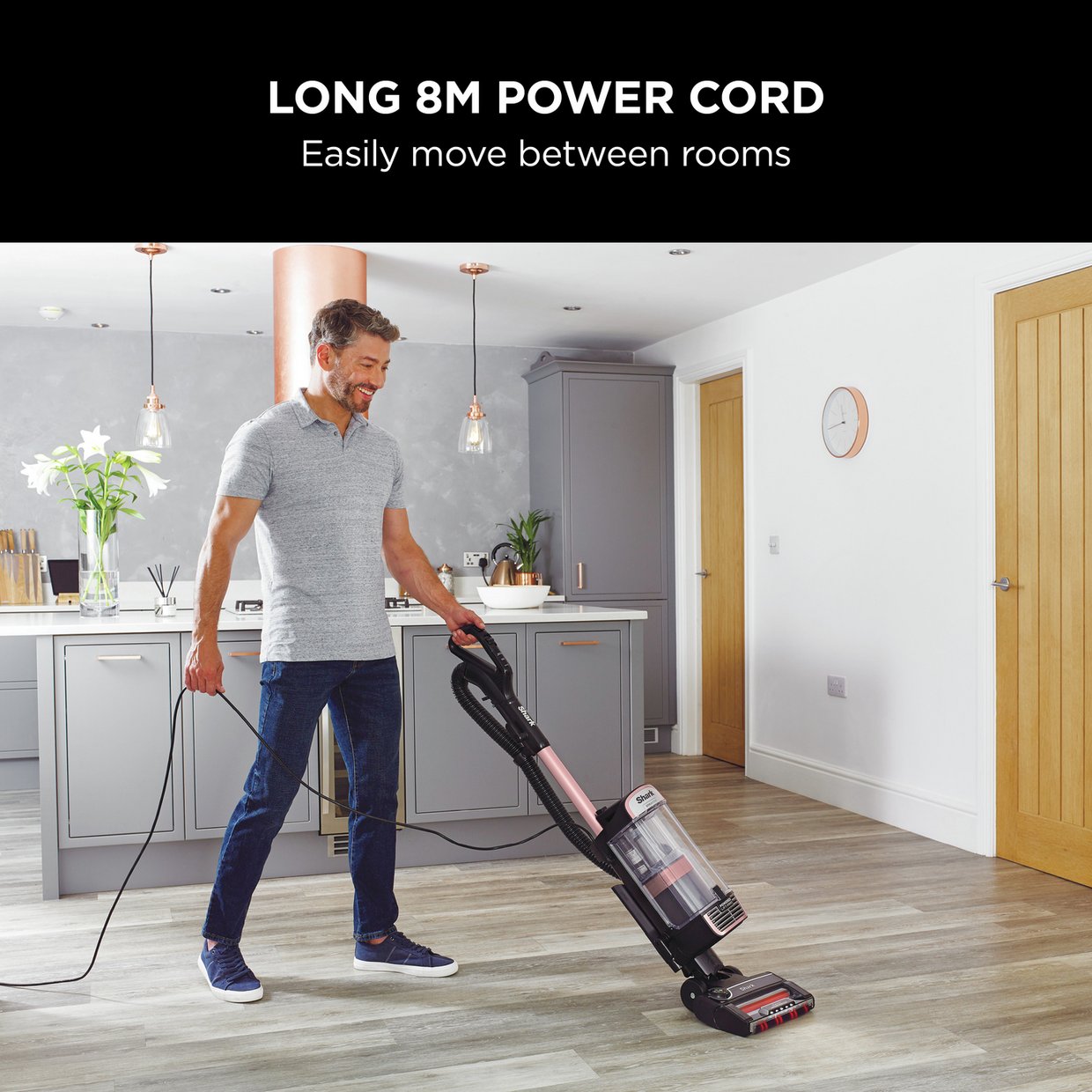 This Pet Pro model includes 3 attachments – a Crevice Tool, Multi-Surface Tool and Anti Hair Wrap Pet Tool, effortlessly removing embedded hair from upholstery. Reach up high with the wand in portable mode. Easy to use with a long 8m cord.