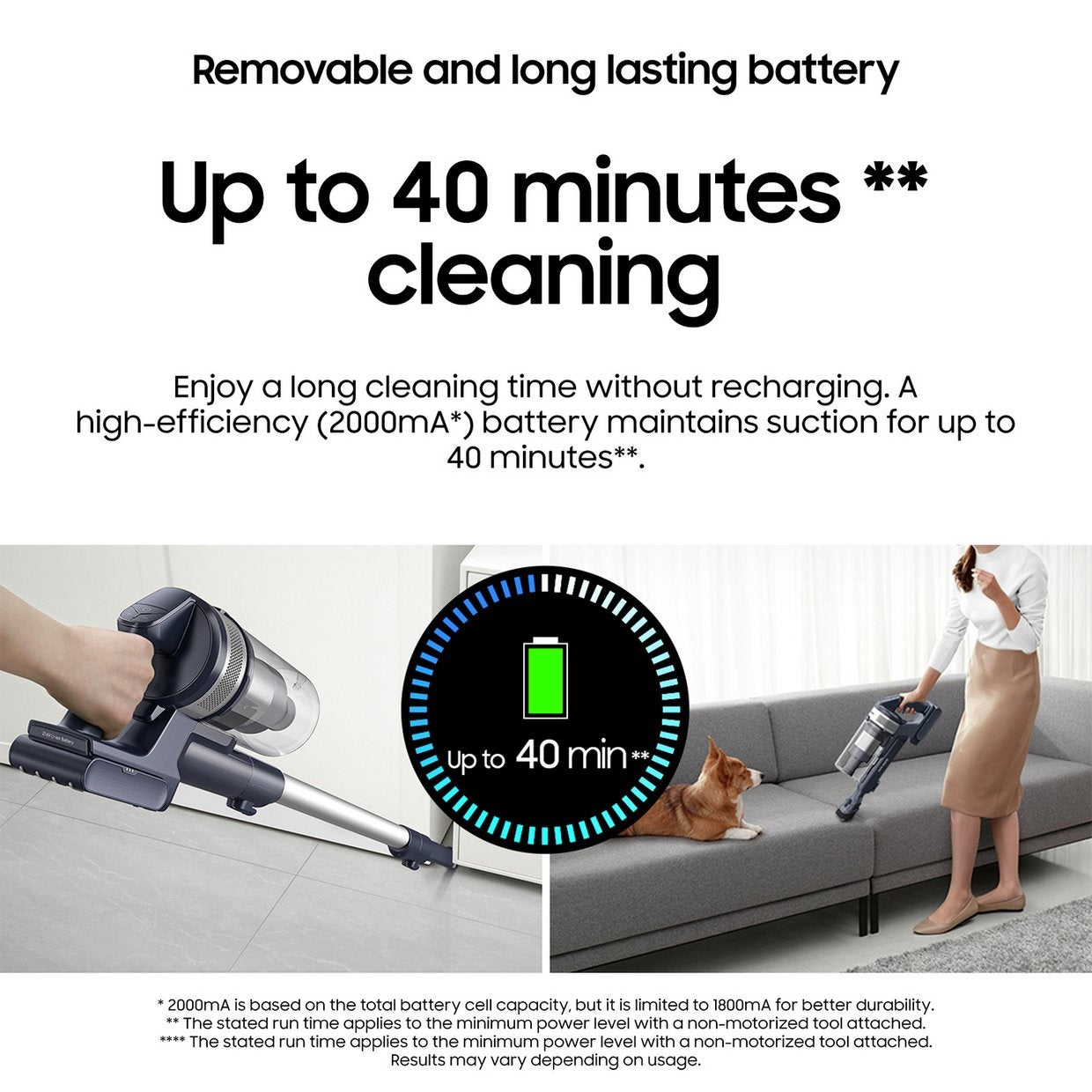 There's power to vacuum the whole house in one go, with up to 40 min run time. It's all down to the long lasting, removable battery. Run time applies to the minimum power level with a non-motorised tool attached.