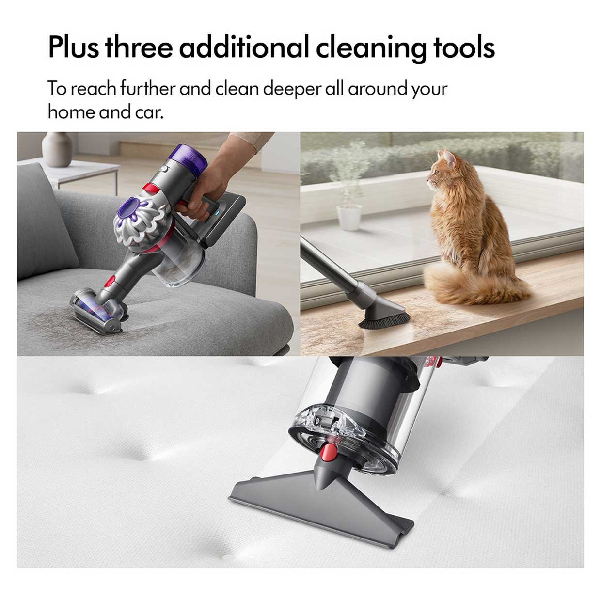 With an extra cleaner head and three additional tools to clean even deeper all around your home and car.