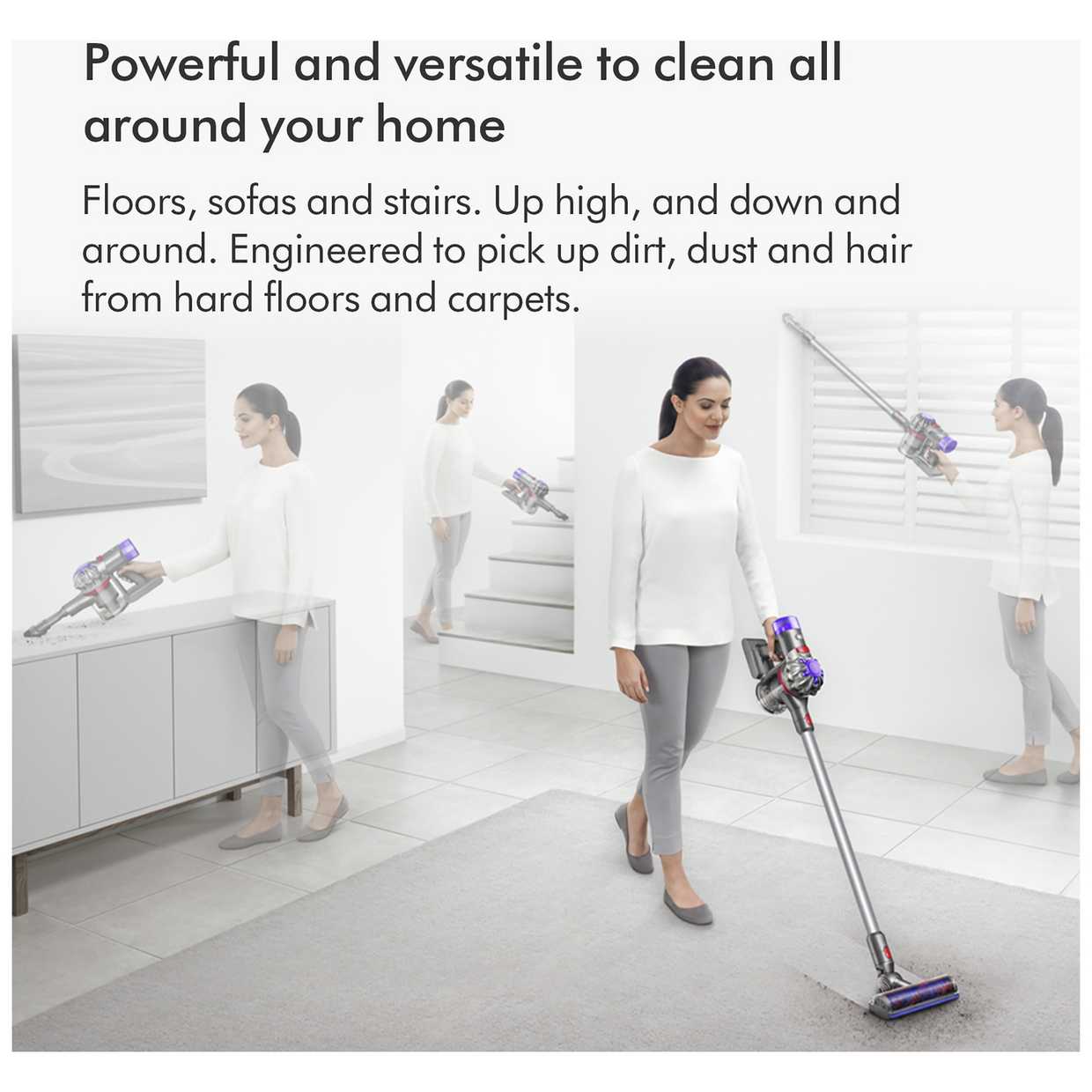 Cordless versatility to deep clean all around your home. Versatile Dyson cordless technology - for easier cleaning on all floor types, mattresses, sofas and stairs.