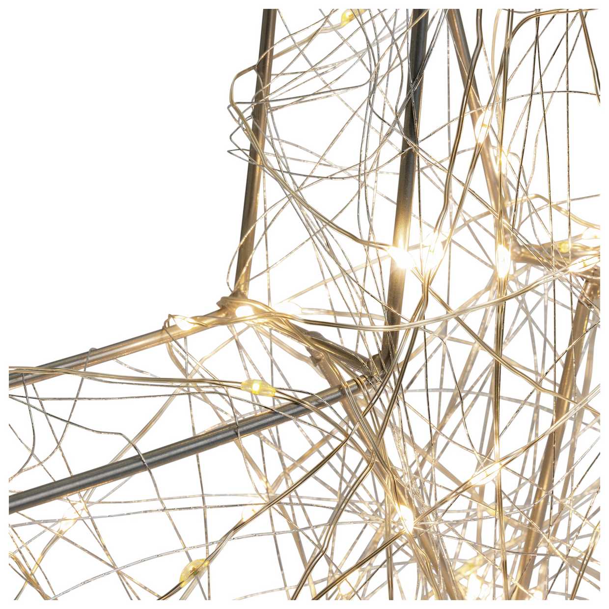 120 warm white LEDs twinkle and flash within the lightweight metal frame.