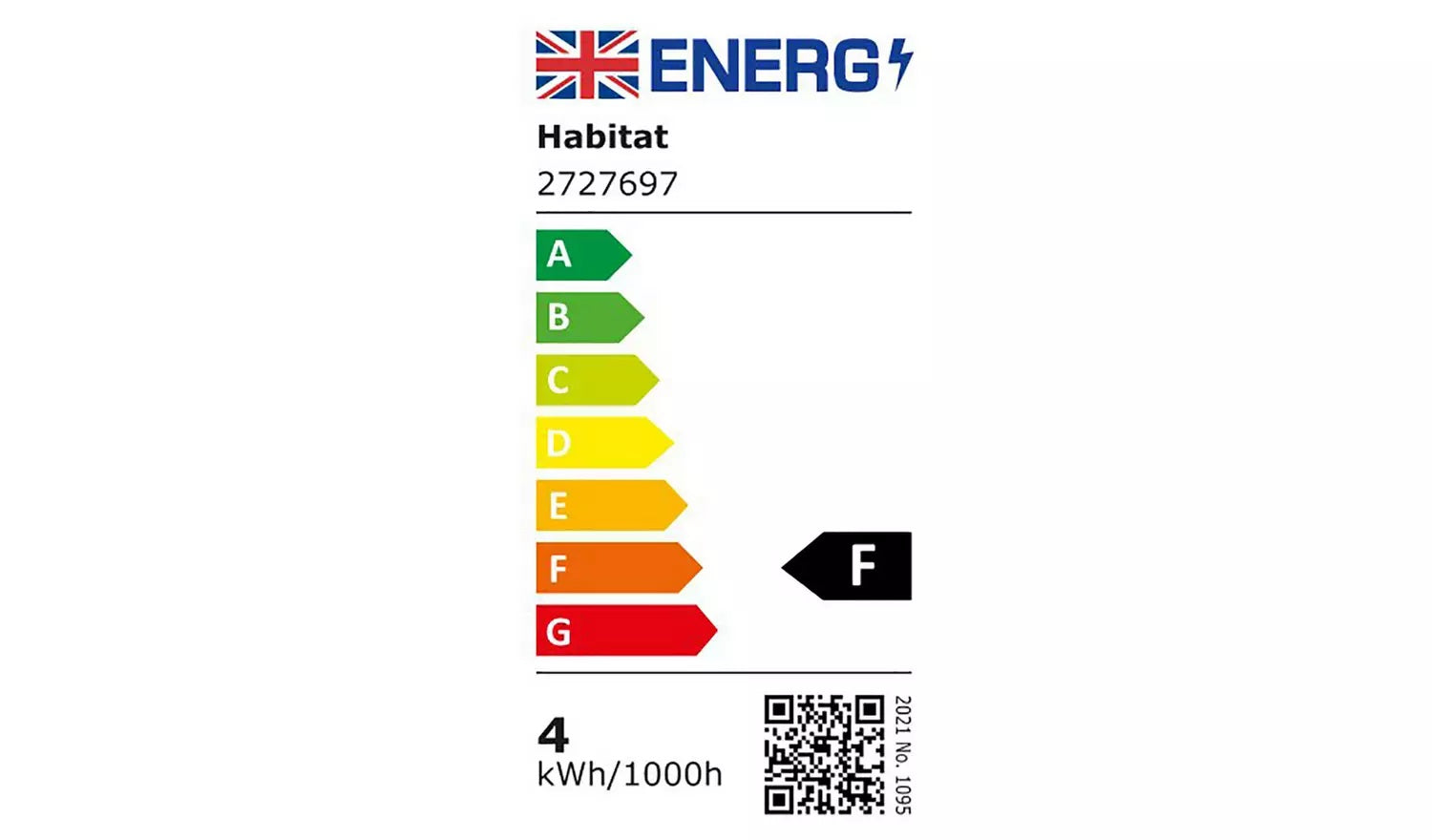 Energy efficiency class F. Energy consumption per 1000h 4kWh.