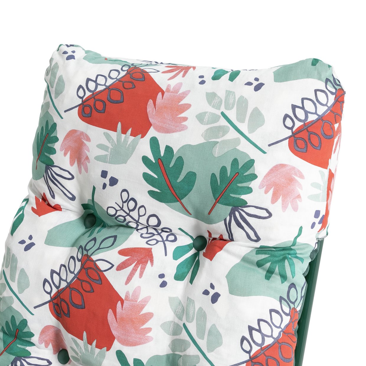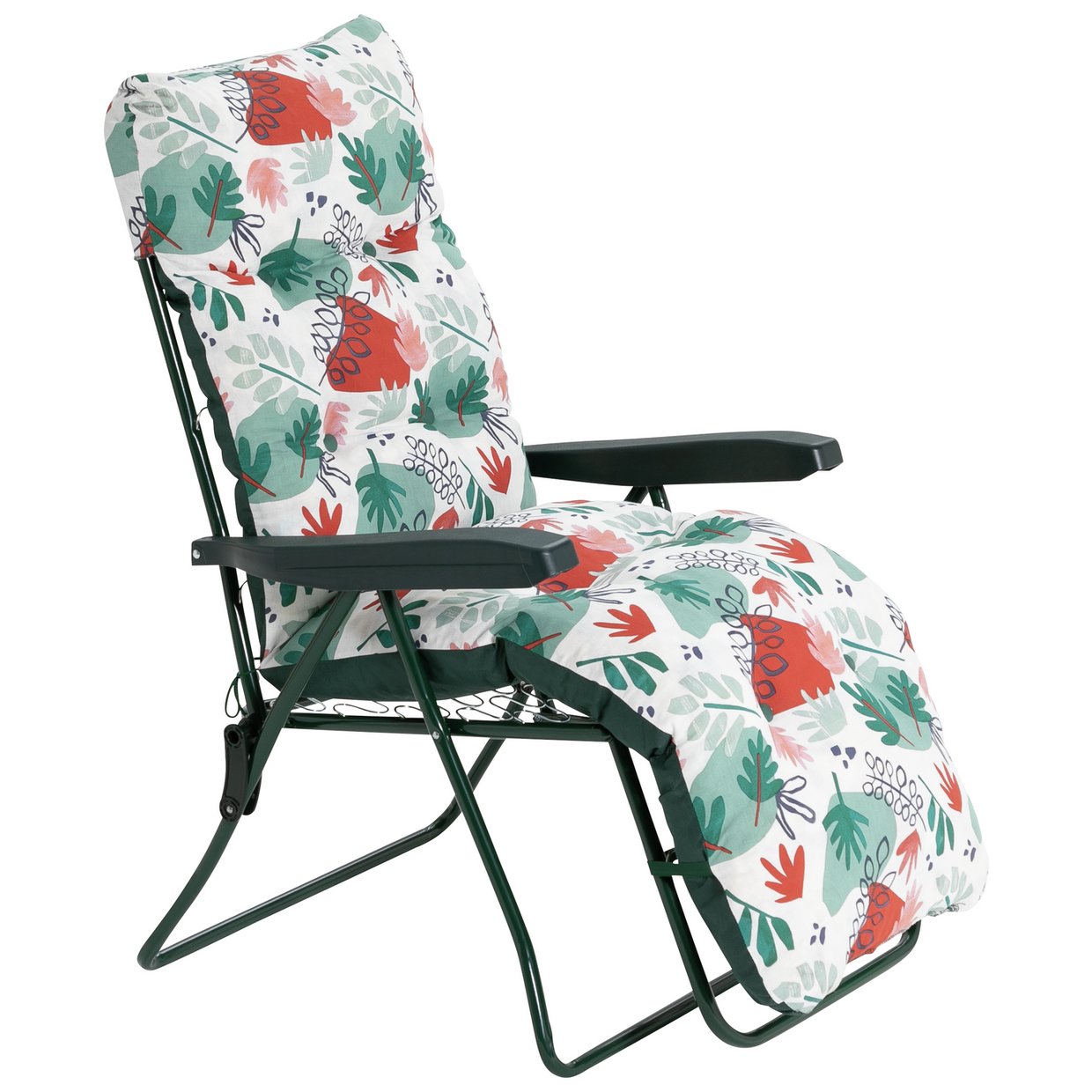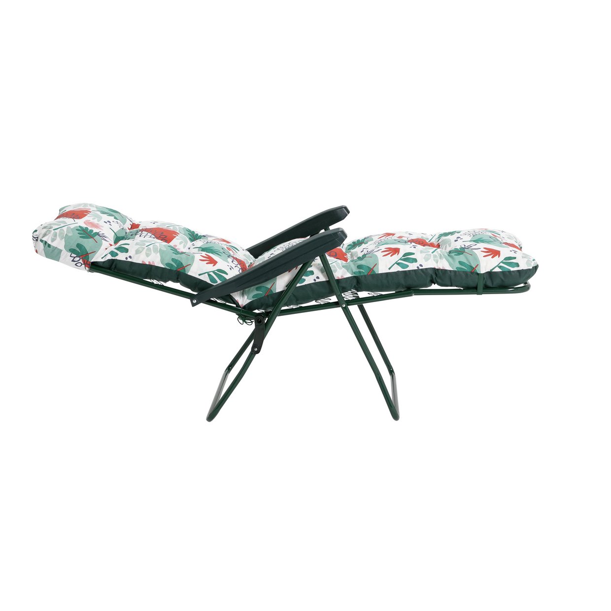 For added comfort, it comes with a padded cushion in a truly tropical green and red print.